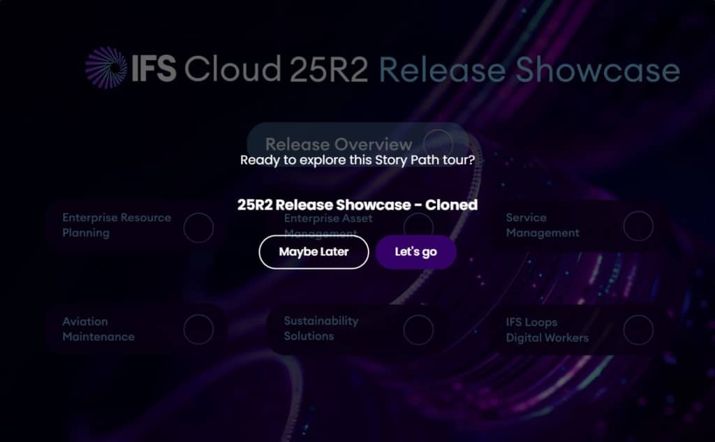 Get a full tour of the IFS Cloud 25R2 with videos showcasing the latest release and how you can work greener, faster and smarter. Click on the image below to get started!